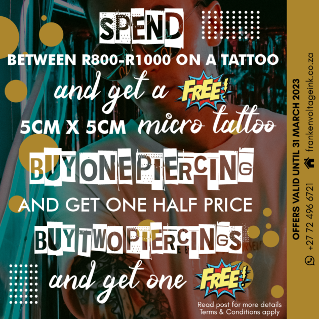 Our first official Tattoo and Piercing special for 2023!!! We are offering FREE Tattoos OR...